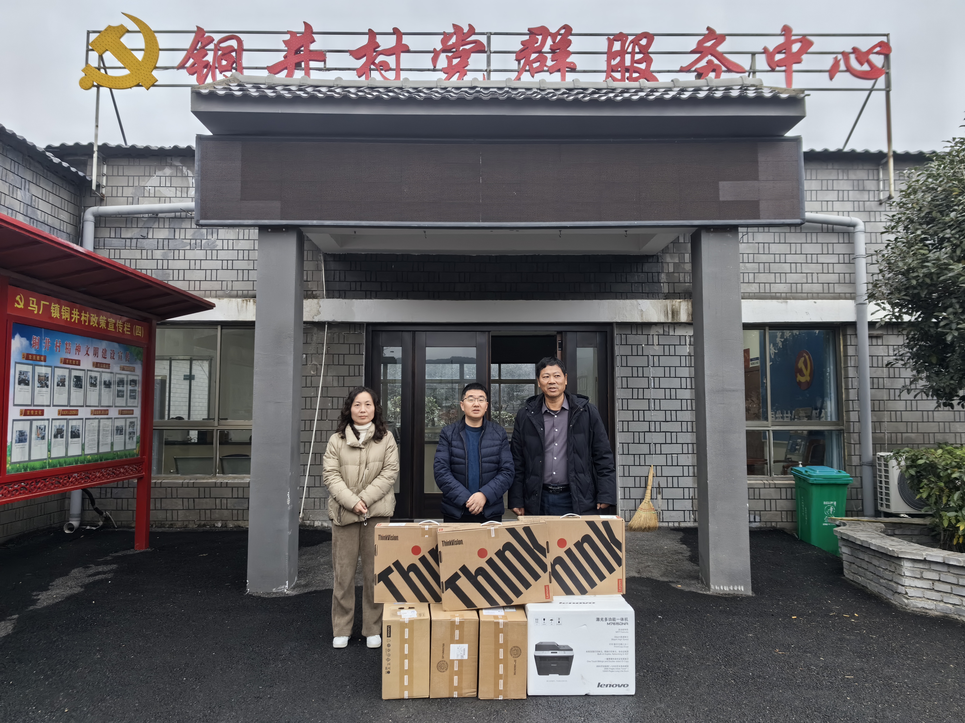 王峰代表集團公司向銅井村捐贈辦公電腦、打印機等辦公設(shè)備,并捐贈3萬元資金用于幫助銅井村人居環(huán)境示范點建設(shè)。
